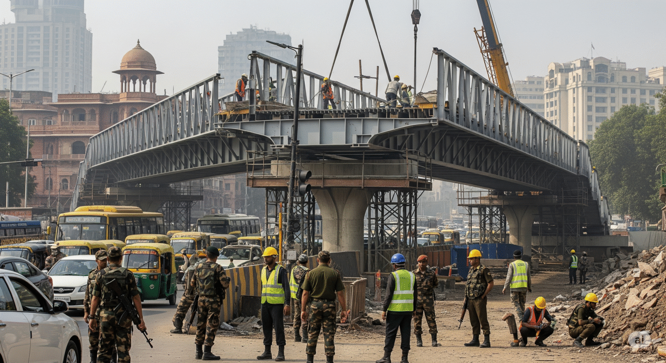Hello, Delhi friends! We have some great news about a new construction project that will help our soldiers. A new footover bridge is being built for the brave soldiers of the Rajputana Rifles regiment in Delhi Cantonment. This is a very important project for our city.